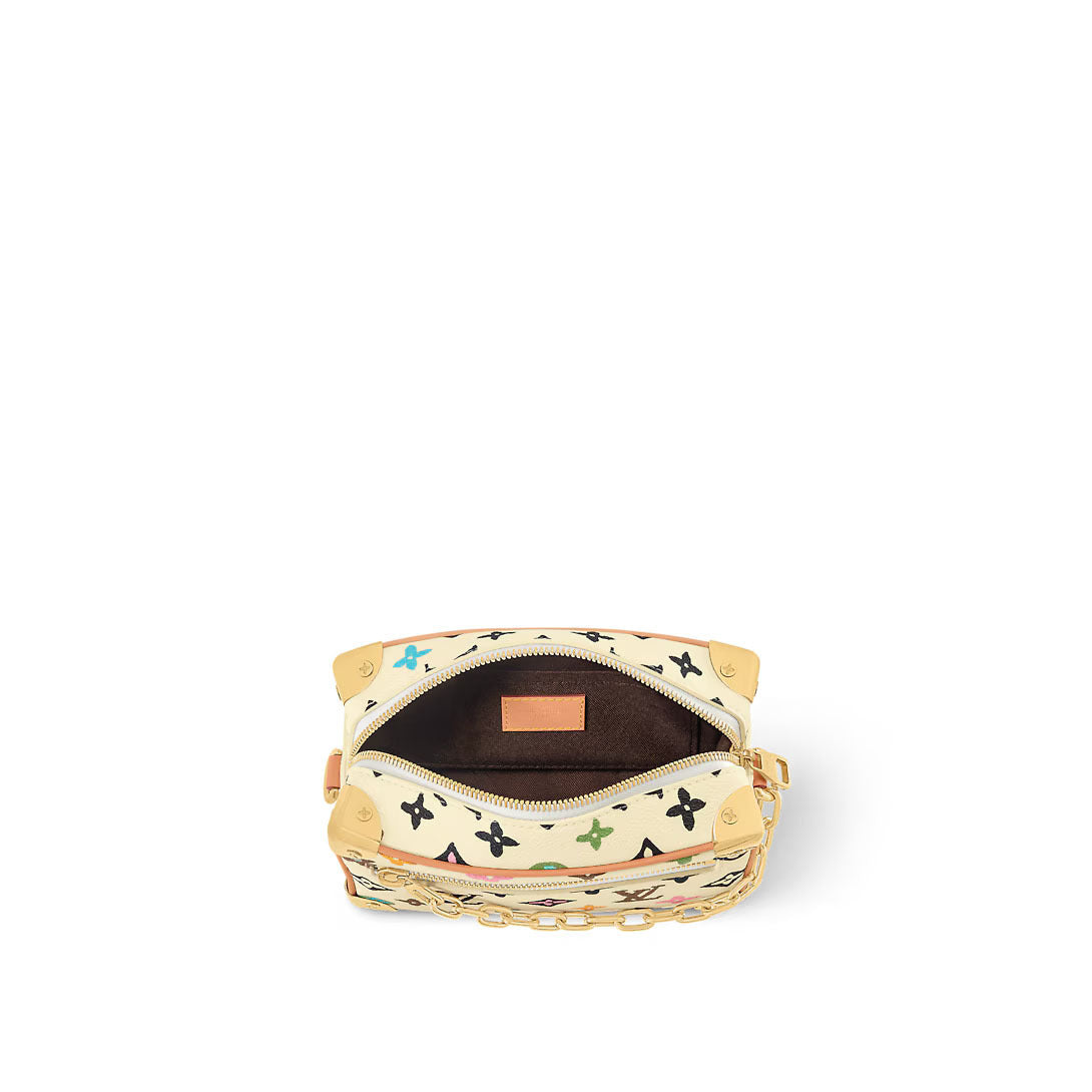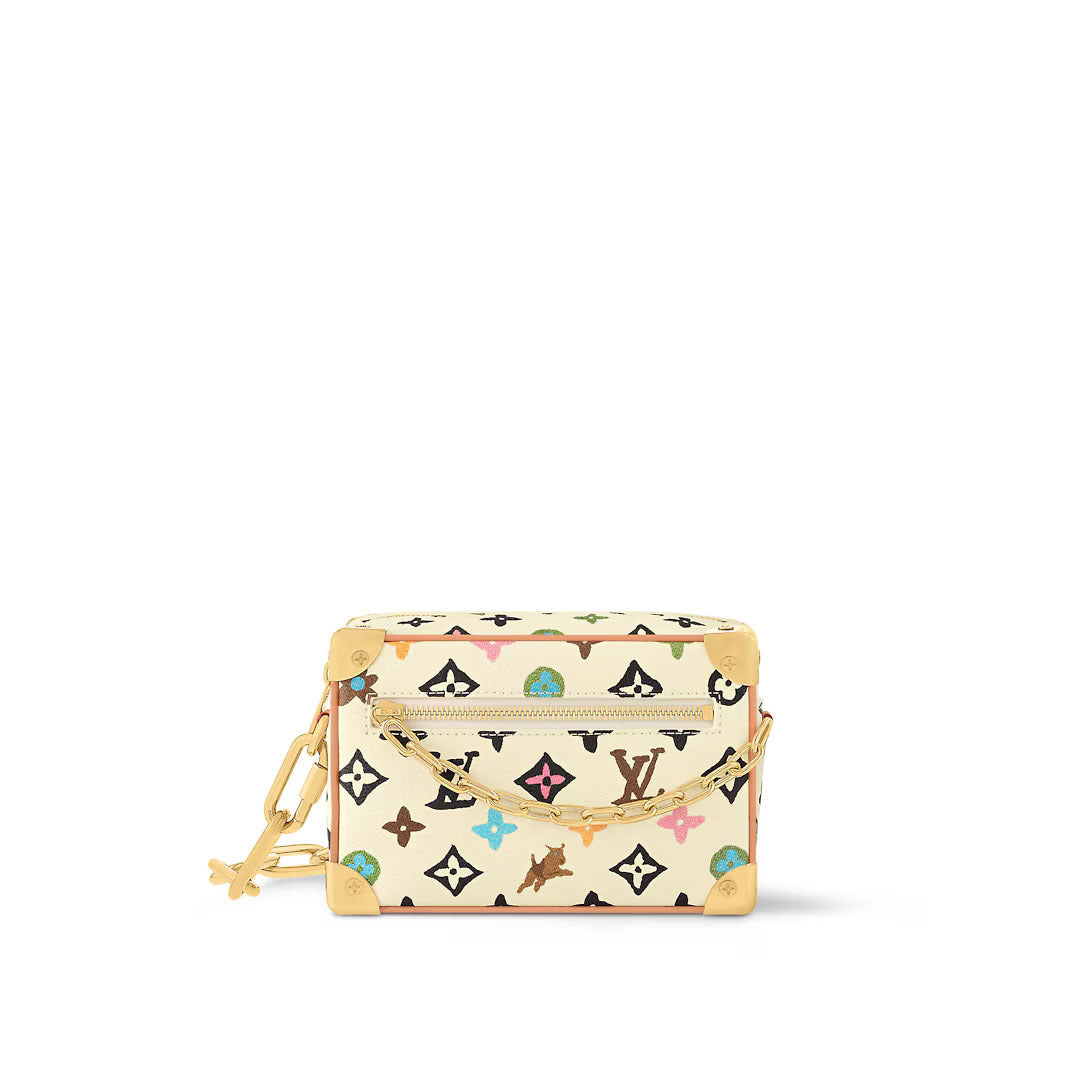 伝統とモダンな雰囲気を融合したミニ・ソフトトランクをモノグラム・クラギー キャンバスで仕立てました。モノグラム・フラワーとLV シグネチャーに加え、デイジーやテリアを添えて手描き風にアレンジしたパターンが特徴です。調節可能なストラップにつながったチェーンは、フロントファスナーの装飾的なチェーンと同じゴールドカラーで仕上げました。