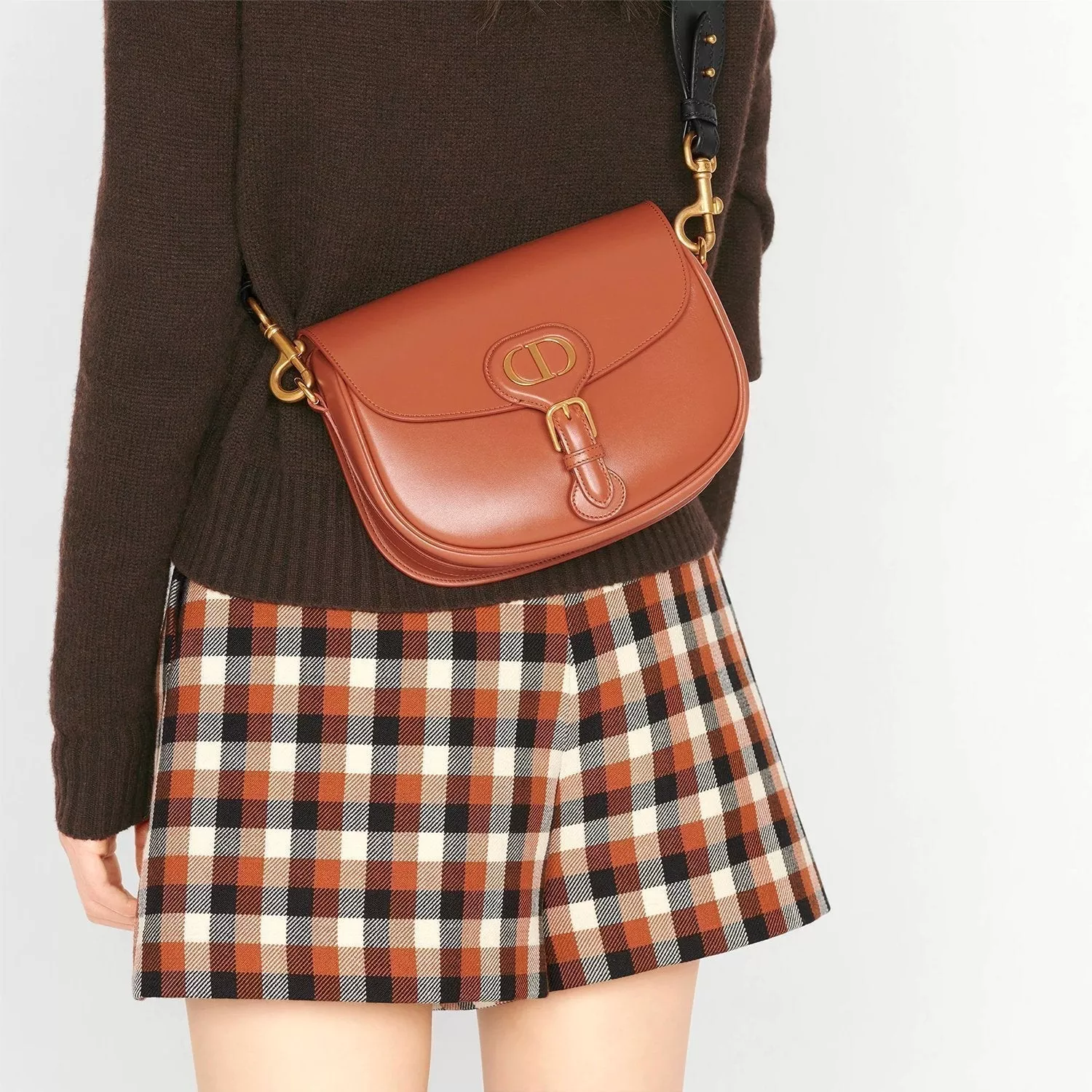 ホーボースタイルの「Dior Bobby (ディオール ボビー)」は、洗練されたラインと均整のとれたシルエットが魅力。ミディアムサイズのこのモデルは、ダークタンのボックスカーフスキンに柔らかなスエードの裏地を組み合わせ、艶やかなアンティークゴールドコーティングのメタルパーツでアクセントを添えました。取り外しと長さ調節が可能なスライド式ショルダーストラップには、ミリタリー調バックルが備えられ、ショルダーバッグとしてはもちろん、クロスボディやハンドバッグとしてもお使いいただけます。